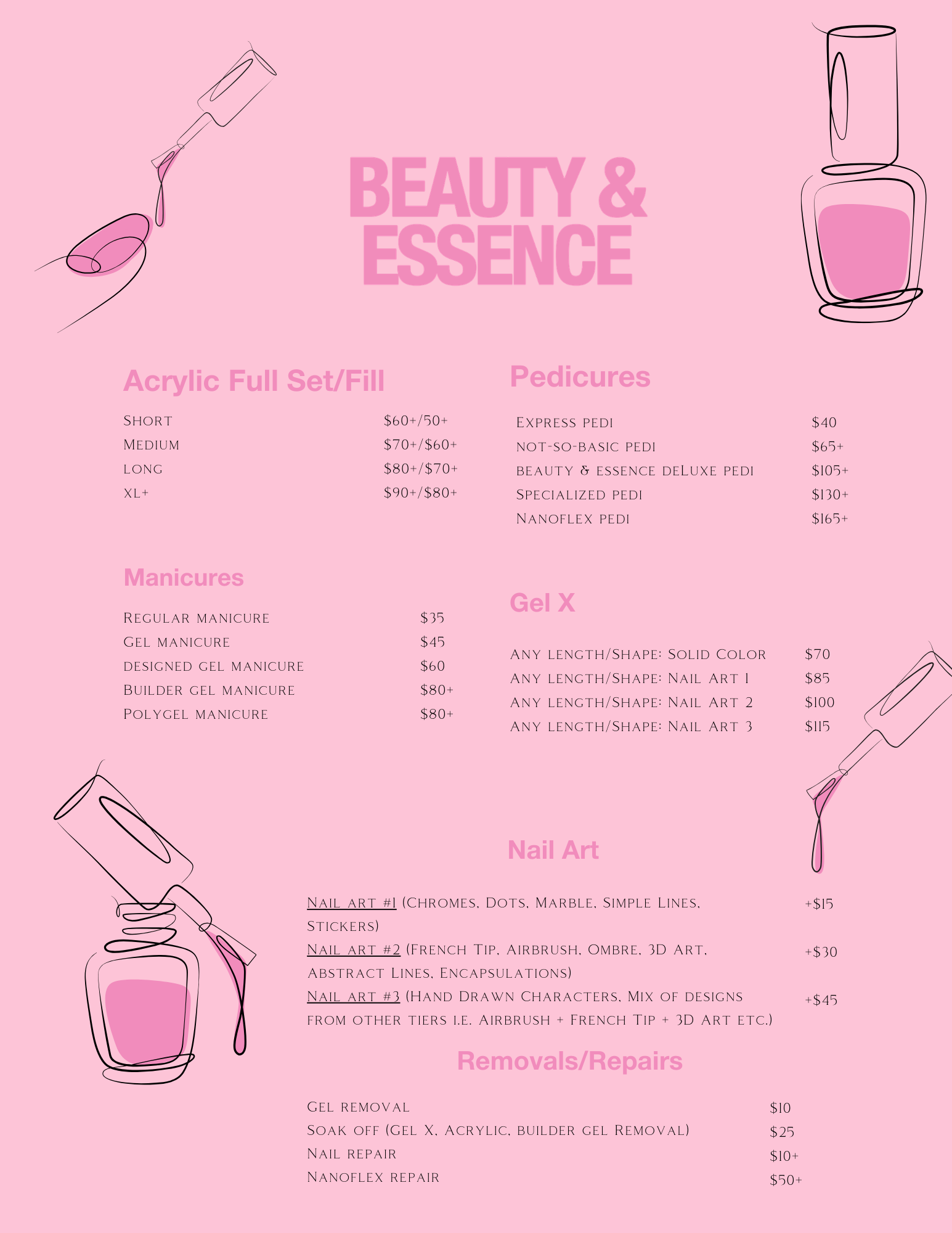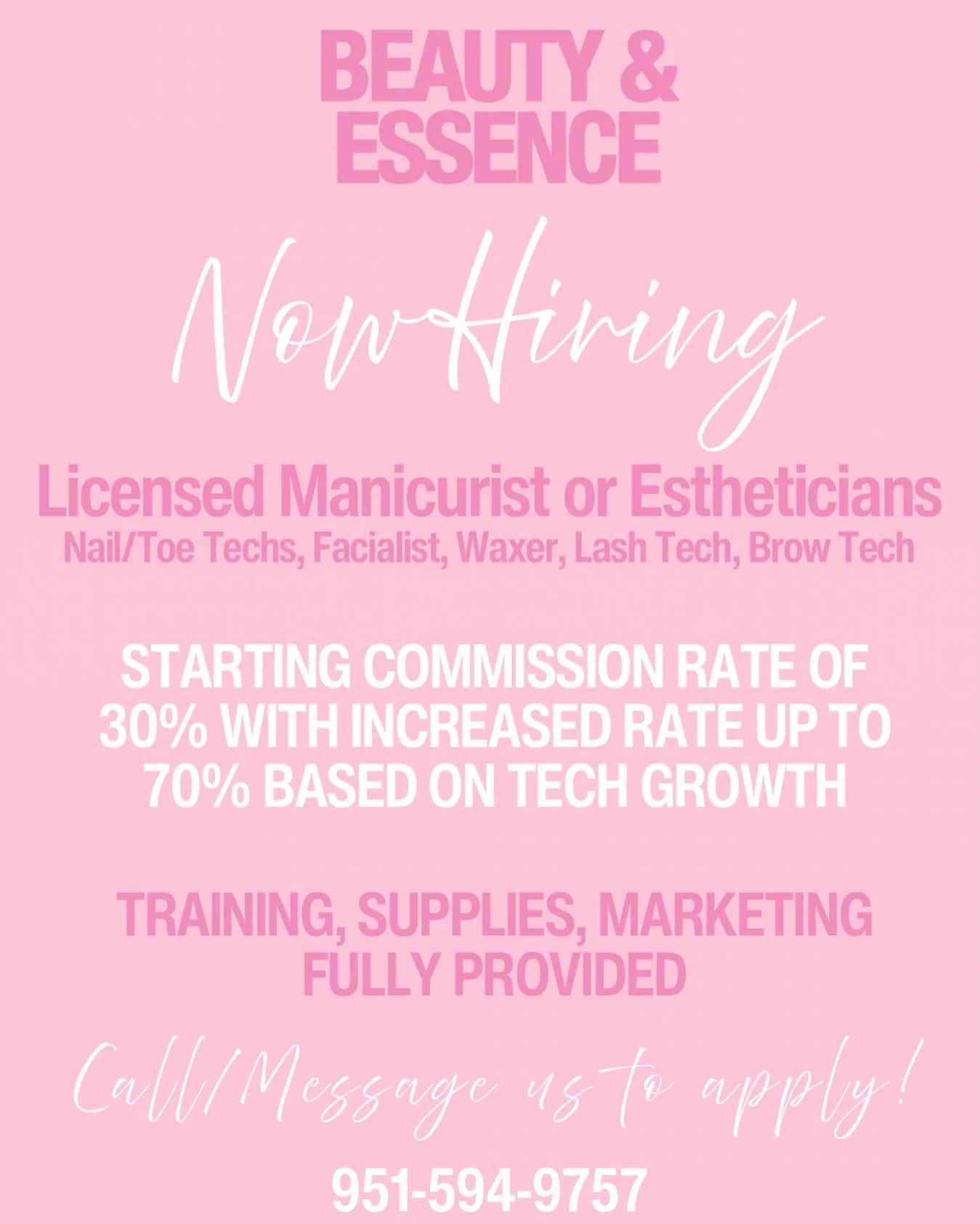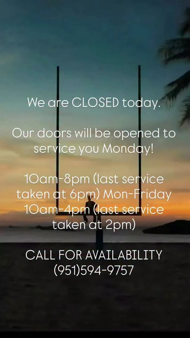 We are now accepting same day appointments/walk ins. Earliest appointment is 10am last appointment is 6pm. Please contact us for availability: (951) 594-9757 Instagram @beautyndessence or our direct booking link: